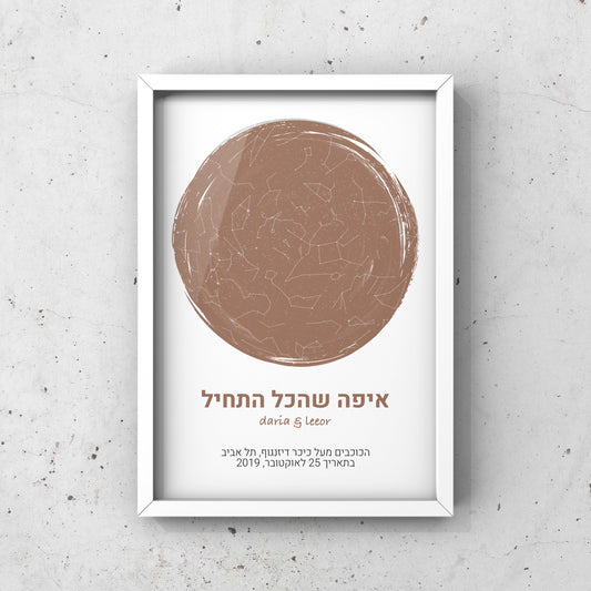 מפת כוכבים לפי תאריך - מתנה אישית ליום הולדת ויום נישואין