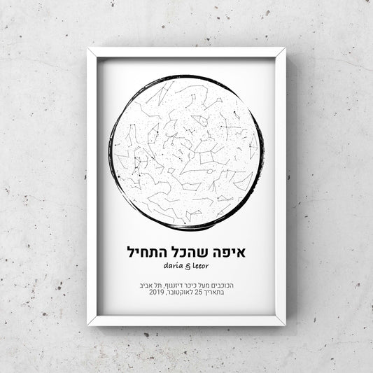 מפות כוכבים קלאסיות המציגות את הכוכבים כפי שהיו בתאריך המיוחד שלכם. מתנה מושלמת לזיכרון בלתי נשכח. המפות כוכבים בעיצוב אלגנטי ומודרני שמתאים לכל בית או משרד.